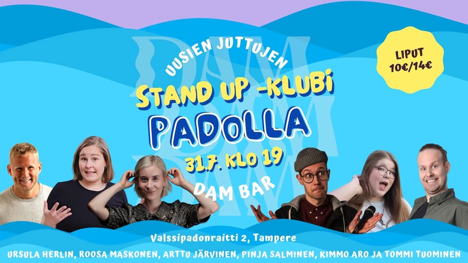Ainutlaatuinen ilta siis. Liity seuraamme, kun kokeneet koomikot kokeilevat tuoreita juttuideoitaan Tammerkosken padon reunalla Dam:issa.